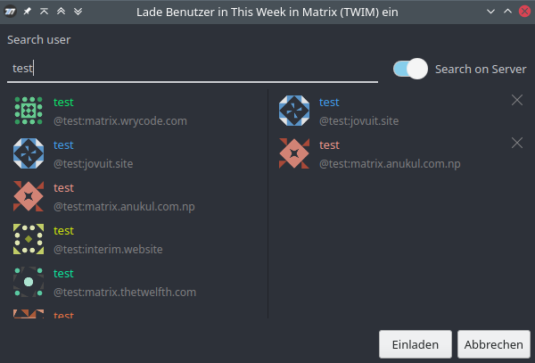 /cmarkcommand. Speaking of other changes, we now support||warning|spoiler||as a way to enter spoilers, with the warning being optional as well as~~text~~for strike-through.There is also now a workaround for Wayland users, who were bothered by stuck menus. This still needs to be fixed in Qt eventually, but in the meantime you can now close menus by clicking somewhere inside of Nheko thanks to a contribution by enigma9o7. Decodetalkers also made Nheko clean up notifications on exit and the fullscreen image overlay hide, when the save dialog is open. You can create DMs by pasting an mxid again now. Previously you needed to delete and re-enter the last character... The username completer should also now open around twice as fast and clicking notifications now once again restores Nheko from the tray. The last goodie was contributed by Malte. The invite dialog inside a room can now search for users you have a DM open or the server side userdirectory for suggestions.
